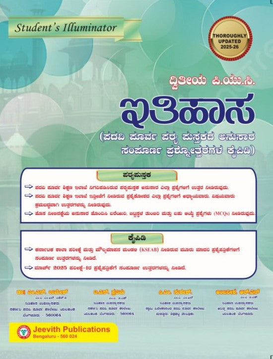 Jeevith 2nd PUC Ithihasa - Student Illuminator Students Illuminator A Complete Question Bank With Answers An Authentic 2025-26