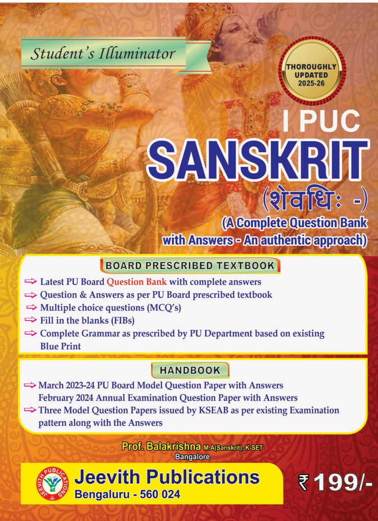 Jeevith 1st PUC - Sanskrit- Student's Illuminator|A Complete Question Bank With Answers - An Authentic Approach|For 2025-26|